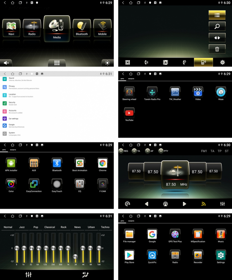 - Bluetooth з підтримкою списку контактів та A2DP аудіо